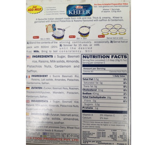 Gits Basmati Rice Kheer 3.5 Oz / 100 Gms