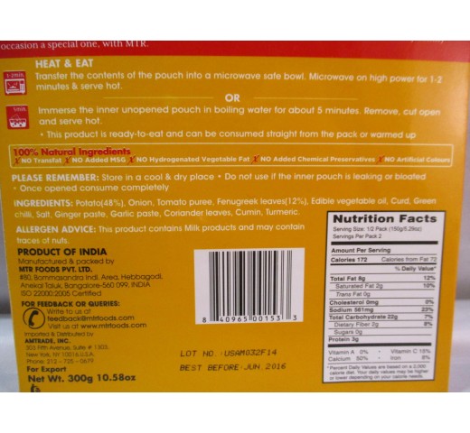 MTR Alu Methi 10.58 Oz / 300 Gms
