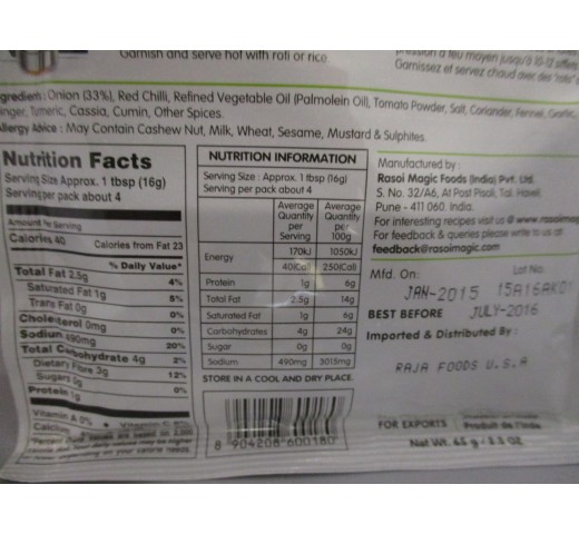 Rasoi Magic Paneer Makhanwala Spice - No Onion or Garlic 1.75 OZ / 50 Gms