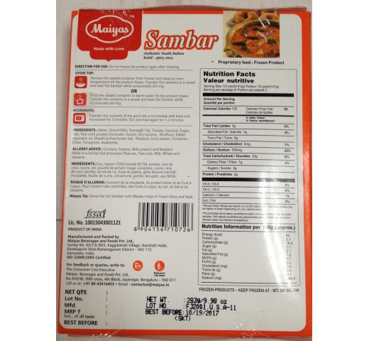 Maiyas Sambar 9.98 Oz / 283 Gms