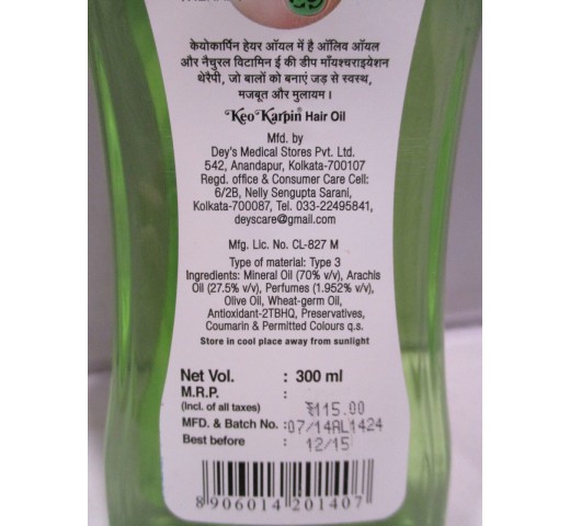 Keo Karpin Hair Oil With Olive Oil 10.5 OZ / 310 Ml