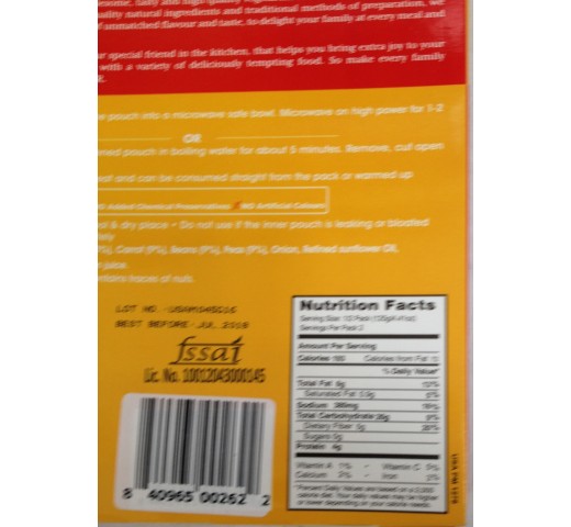 MTR Vegetable Pulao 10.5 Oz / 300 Gms