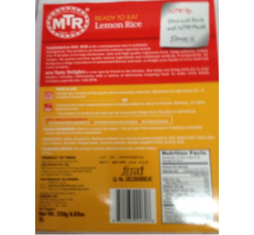 MTR Lemon Rice 8.82 Oz / 250 Gms