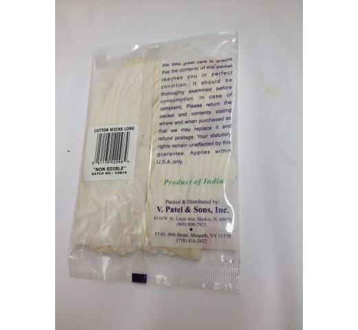 Patel's Cotton Wicks Long (Non Edible) 0.88 OZ