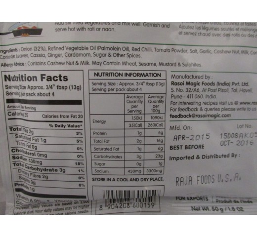 Rasoi Magic Pav Bhaji - No Onion or Garlic 1.75 OZ / 50 Gms